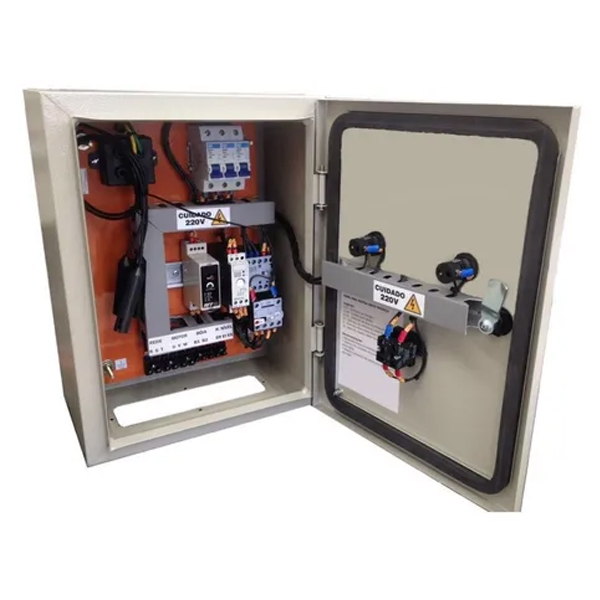 Integração de dispositivos de comando e proteção, como contatores, relés térmicos, disjuntores, soft starters e inversores de frequência;